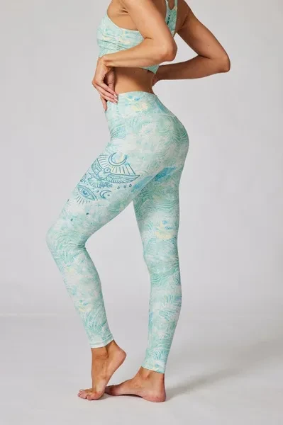 Pattern Description: This serene green print is inspired by the plants in a silent forest. They grow from the soil, and with the baptism of time, eventually die and turn into nutrients absorbed by the soil to nourish new lives. The pattern combines the element of cypress and thorn sunflowers to show different natural ages, indicating the cycle of death and rebirth. Product Features: High-waisted design perfectly shapes, supports and flatters any body types No small elastic band at the top No side seams for extra flattering fit and comfort Pair it with our matching Eternity Reversible Two-way Bra for a totally unique and dreamy look Fabric: Super comfy and soft sustainable fabric - made with 84% RPET and 16% spandex from recycled plastic bottles, and is 100% recyclable! Four-way stretch, breathable and anti-bacterial. Model Info: Natali // Height: 5'7  // Bust 34.3” //  Waist 24.4” // Hips 36.6 // SILVERWIND size S in tops & bottoms  Poli // Height: 5'7 // Bust 33.5” // Waist 23.6” // Hips 35” // SILVERWIND size S in tops & bottoms