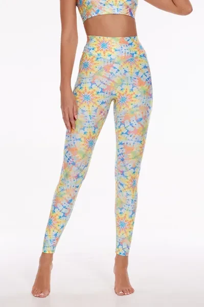Pattern Description: The pattern design incorporates the traditional Eastern tie-dye technique, showcasing a unique artistic style and a sense of mystery. Within the vibrant seamless pattern, numerous small geometric shapes intertwine, creating a flowing and dynamic visual effect. Primarily in yellow and blue hues with accents of green and pink, it's like a beautiful and crystal lattice, evoking a refreshing and peaceful atmosphere. The central point symbolizes the radiant center of the universe and the power of unity, resulting in a harmonious overall design. Combined with the designs of radiance and starry skies, it makes your workouts no more dull and monotonous. Product Features: High-waisted design perfectly shapes, supports and flatters any body types. No small elastic band at the top. Two side pockets for essentials. No side seams for extra flattering fit and comfort. Stretchy and light fabric for a smoothing, second-skin feel. Fabric: Made with 84% RPET and 16% spandex from recycled plastic bottles and it is 100% recyclable! - Four-way stretch, breathable and anti-bacterial. Model Info: Evy// Height: 5'8 // Bust 33.9” // Waist 24.4” // Hips 36.6 //SILVERWIND size Regular S