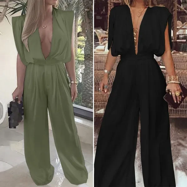 Package included:1 Jumpsuit Material:65% Polyester+35% Rayon Colors:Black,White,Army Green Size:S,M,L,XL,2XL,3XL,4XL,5XL Sleeve Length:Sleeveless Neckline:V-Neck Pattern: Solid Color Length:Ankle Length Buckle chain:With Front Zipper Thickness:Thin Decoration:Lace-Up Features:Wide-legged Style:Leisure,Bohemian,Retro,Europe,Sexy Season:Spring,Summer,Autumn,Winter Occasion:Family,Party,Beach,Wedding,Holiday Attentions: 1.The Real Object May Exist Slightly Colors Differences Compared To Images As Different Computers Display.Caution If Minding,Thanks. 2.There Might Be A Manual Measuring 1-3 cm Error.Sorry For Any Inconvenience. 3.Please Prevail On Real Item, Model Images For Reference Only. 4.Attention!!!Please check the size chart carefully before placing the order.