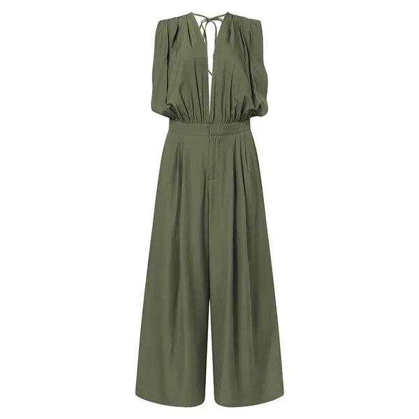 ZANZEA Women V Neck Solid Sleeveless Party Long Jumpsuit Wide Leg Lace-Up Summer Romper Pants