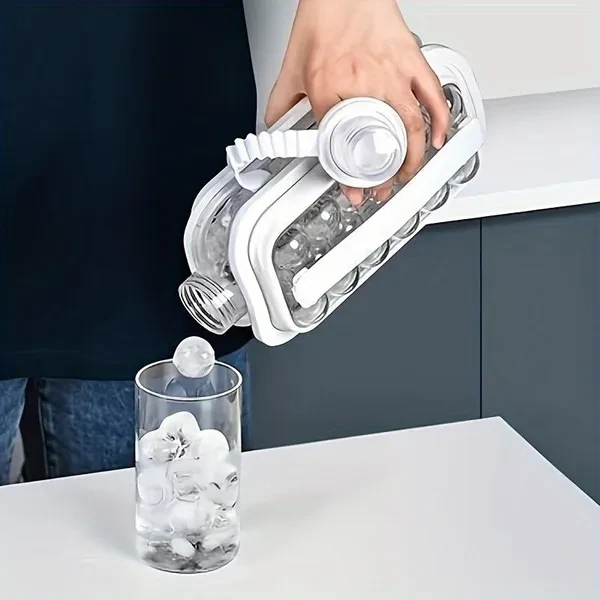 About this item FUNCTION: 2-in-1 ice cube molds, ice cube box and water bottle for refreshing drinks EASY TO CLEAN: Easy to clean by removing the ice cube molds. Also dishwasher safe. Resistant to high temperatures up to 100 degrees. AVOID ADHESION OF ODORS: With this ice cube tray, you won't touch the ice cubes with your hands again even when serving, and it won't adsorb odors from the refrigerator.