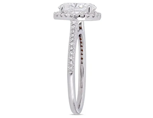 2.00 Carat (ctw) Synthetic Moissanite Halo Engagement Ring 14K White Gold with 1/5 Carat (ctw I1-I2) Diamonds 1 This unique and sophisticated synthetic moissanite engagement ring is crafted in 14 karat white gold and features an oval-cut, prong-set created moissanite at its center in a double halo of 46 round-cut, buttercup-set radiant diamonds with shimmer along the shank. With exquisite luster and incredible shine, choose this style for your bride-to-be as you celebrate this special milestone and begin the next stage of your lives together. Moisannite is the perfect replacement for a diamond and comparable to or even surpassing the clarity, and color of a diamond. Beautifully crafted in 14k white gold with a Polished Finish Stone Type: Moissanite; Color: White; 2.00 CTW; Quantity: 1; Brilliant Cut; Oval Shape; Dimensions: 9x7 mm; Lab Created; 4-Prong Setting Stone Type: Diamond; Color: H-I; Clarity: I1-I2; 0.23 CTW; Quantity: 46; Brilliant Cut; Round Shape; Natural; Prong Setting This item ships in signature jewelry box packaging, ready for gift-giving with a classic, elegant look and feel This Diamond Engagement Ring is the perfect gift for any bridal engagement, birthday, anniversary, holidays, thank you, thinking of you, or for any reason at all SKU: 08DLG1004035MOIW-P