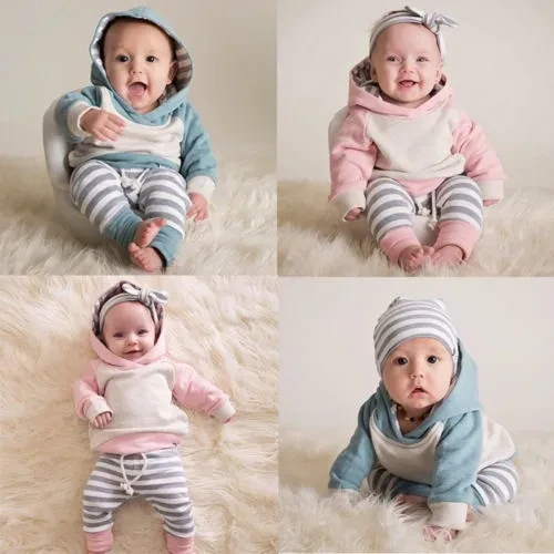 Baby Baby Boy Girls Hooded Sweatshirt Pants Outfits Set !! High quality and Brand new 100% Main Color: As Picture Show New in Fashion Material: Cotton Blend Attention plz: If your kid is chubby, we recomend choosing a larger size, thanks. Please kindly refer to your kids actual height and the size chart before buying/bidding. Thanks. Package included: 1x Hooded Sweatshirt + 1xPants + 1xHeadband(Pink) Or 1xHat (Green) Size Chart: Attention plz: If your kid is chubby, we recomend choosing a larger size, thanks. There is 2-3% difference according to manual measurement. please check the measurement chart carefully before you buy the item. 1 inch = 2.54 cm Please note that slight color difference should be acceptable due to the light and screen.