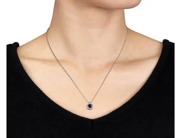 4/5 Carat (ctw) Dark Blue Sapphire & Diamond Pendant in 10k White Gold with chain