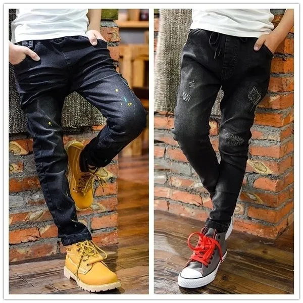 Children Spring&Autumn Casual Jeans Korean Paint Boys Denim Pants Teen Trousers Black 2 Colors 5-14 Years