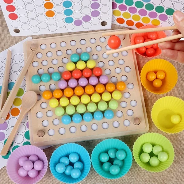 <p>Clip Ball Number Shape Puzzle, Montessori Educational Wooden Peg Board Bead Game for Preschool Toddler and Kids