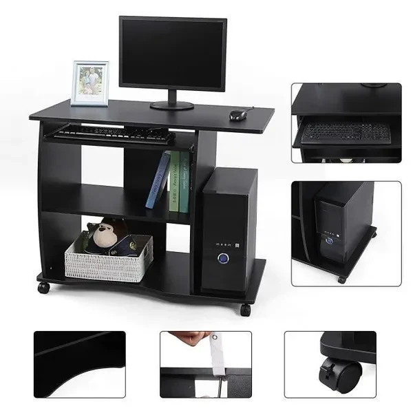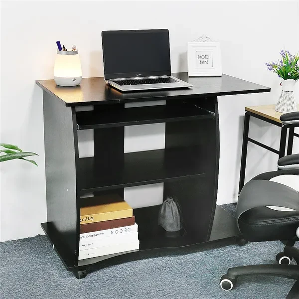 Description: 1. stable and sturdy structure, chipboard + desktop cover seamless melamine veneer, moisture-proof, scratch-resistant, non-fading; 2. practical design - the desktop surface is 90 x 50 cm, the wide area can better meet your work requirements. The retractable keyboard stand (58 x 30 cm) reduces noise and ensures a quiet working environment. The two shelves under the table can be kept, books, plants, books, etc. In addition, the large space on the right side of the desktop (24 x 46 x 67 cm) is provided for the PC. 3. easy to move - On the bottom there are 4 wheels, 2 of which are equipped with brakes that can easily move the table top, reduce noise, easy to clean and better protect the floor. 4. easy to assemble and clean assembly is easy to assemble with the assembly instructions and numbered parts shown, easy to clean with a damp cloth; 5. versatility: suitable for offices, bedrooms, study, etc ... Specifications:: - Product size: 90 * 50 * 75cm - 15MM chips triamine board E1 edge banding - Surface covered with melamine veneer Delivery: - Computer desk * 1 - Assembly instructions * 1 - Mounting screws * 1 Hope you have a good shopping!