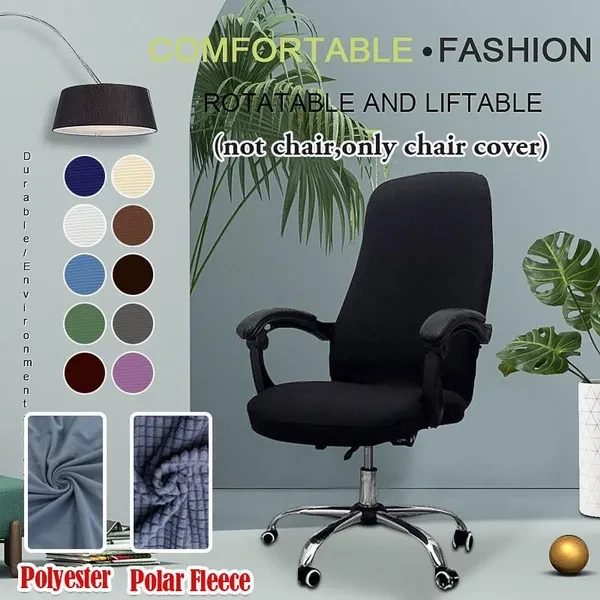Packing list: 1pc * Office Chair Cover (not included chair) ?Polyester fabric Color: Coffee, Navy, Black, Wine red Applicable chair Size: S size: Seat back width: 42-55 cm / 16.5-21.6 inches Chair back height: 45-56 cm / 17.7-22 inches Chair back thickness: 2-6 cm / 0.78-2.4 inches Chair length: 38-55 cm / 15-21.6 inches Seat width: 38-55 cm / 15-21.6 inches M size: Seat back width: 42-55 cm / 16.5-21.6 inches Chair back height: 57-65 cm / 22.4-25.6 inches Chair back thickness: 6-10 cm / 2.4-3.9 inches Chair length: 38-55 cm / 15-21.6 inches Chair width: 38-55 cm / 15-21.6 inches L size: Seat back width: 45-58 cm / 17.7-22.8 inches Chair back height: 70-80 cm / 27.6 - 31.5 inches Chair back thickness: 13-17 cm / 5-6.7 inches Chair length: 45-58 cm / 17.7-22.8 inches Seat width: 45-60 cm / 17.7-23.6 inches ?Polar Fleece fabric Color: White,Navy blue,Blue,Black,Taupe,Green,Wine red,Khaki,Beige,Light grey,Light coffee,Light purple,Dark grey,Dark coffee Description - High-density fabric protects your chair from unexpected stains - Active Dye technology used for strong color fastness. - Elastic fabric for easy application. - Elastic band and zipper design offer fit and non-slip grip. - Available in different colors and patterns design to match any interior. - Perfect choice for home study,office. - Totally machine washable. Installation Notes: 1. Set the hem of the seat cover from the back of the seat. 2. Pull the zips on both sides. After pulling the zipper, stretch the hem to the bottom of the seat. 4. After you have set it up, you can sort it out. Note: Please carefully compare the product size chart before buying, do not take a mistake. Please understand the color difference caused by shooting light, display, etc. Thanks to the manual measurement, please allow 2-3cm measurement error, thank you.