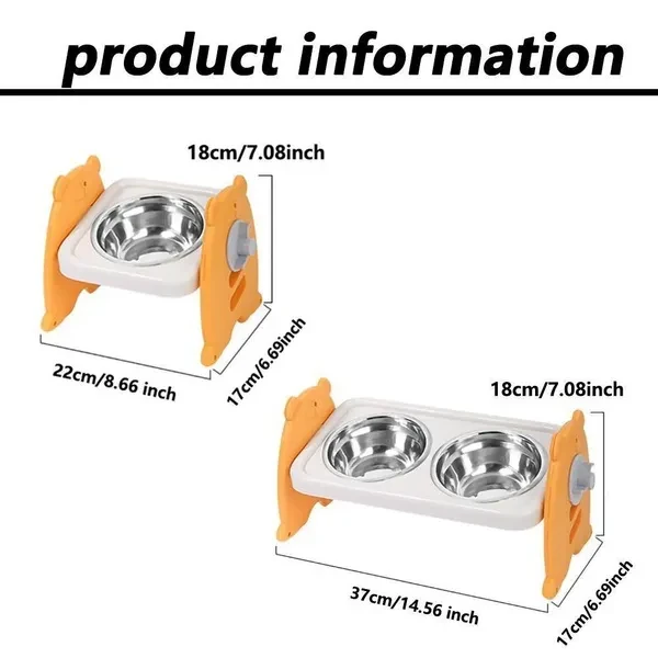 ★Protect the Neck: The Pet Double Bowl is designed with a 15° slant to ensure a comfortable feeding position for your cat, helping to protect their neck and promote better digestion. ★ Cat Food and Water Bowl Set: This set includes two bowls, allowing you to provide both food and water to your beloved feline conveniently. The elevated design promotes a cleaner eating environment, reducing the risk of contamination. ★ Optimal Indoor Cat Care: Our cat bowls are specially designed for indoor cats, considering their unique needs and preferences. The slanted design and appropriate depth of the bowls make it easier for cats to eat and drink comfortably. ★ Durable and Easy to Clean: Made from high-quality materials, our Pet Double Bowl is durable and built to last. The smooth surface and removable stainless steel bowls make cleaning and maintaining hygiene for your furry friend easy. ★ Stylish and Functional: With its sleek design and attractive color, the Pet Double Bowl adds a touch of style to any home. Its functional design ensures that your cat's food and water stay in place, reducing mess and making mealtime more enjoyable for both you and your pet.