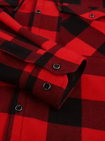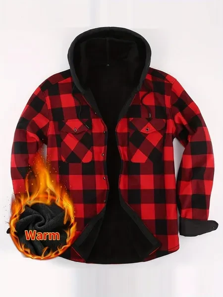 Loose Jacket Men's Autumn and Winter Warm Jacket Fashion Casual Plaid Long Sleeve Pocket Hooded Jacket