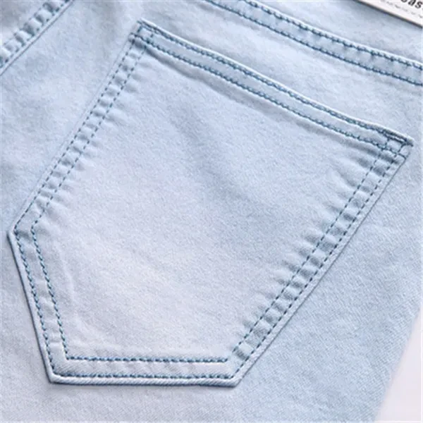 Welcome to my shop! You can click on the "visit the store" to find more new things, dear friends, thank you for browsing our products, I hope you can enjoy shopping. If you like our stuff, keep it up, if you are satisfied with our products, we hope you can share it with others. Article Type: jeans Gender: Men Material: Cotton, denim, polyester Type: Thin Type: Middle waist Fabric Type: Line Total Length: Type of closure: Zipper Decoration: none Style: Straight jeans Pattern Type: Solid Thickness: Light Weight Washing: Wash White, medium, Chemical
