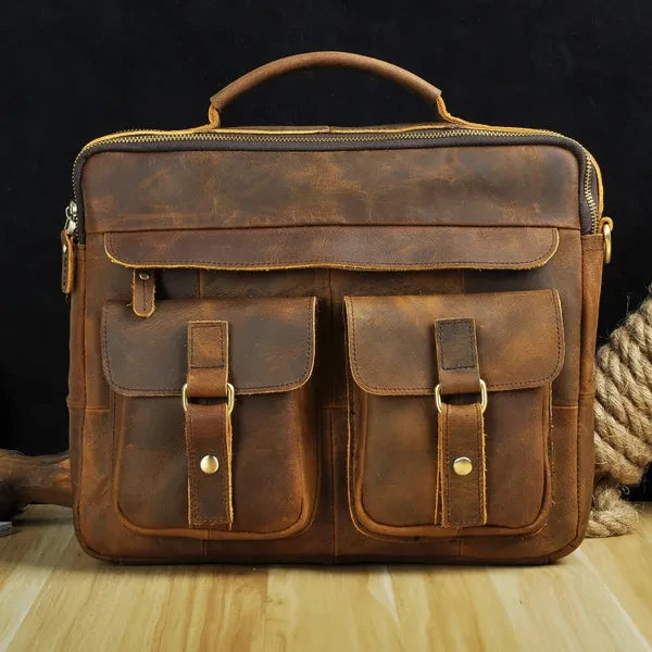 Product NO: B1124 (B207) Material: Genuine Leather Size: 33*7*27cm(13*3*10.5inch) ,can fit a max 13inch laptop Structure: This is a high quality genuine leather glossy briefcase, it helps to keep your commodity organizered. Detachable and adjustable shoulder strap. Attentions: 1. This kind of leather is easy to get scratches, please be noted before placing an order. 2.There may come with some leather smell when you get this produtc, since it's new and unused. If you want to get rid of it asap, please open the package and put it in a ventilate place for a few days, the smell will also fade away as time going. 3.Because each piece is individually crafted, the color of each piece may vary slightly, please understand, thanks.