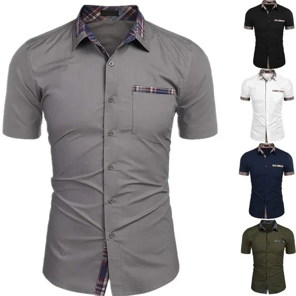 Please read the size carefully before buying, welcome to our shop! ! ! Clothing category: men's clothing. men's shirt. Size: XS, S, M, L, XL, XXL (European size). Style: fashion. Color: black, white, gray, army green, navy blue. Applicable scene: daily wear. sleeve length: short sleeve. Style: dress shirts. Style details: button cardigan. Thickness: thin. Applicable season: summer. Autumn, spring (wear a comfortable shirt). Suitable age: fashion (18-45 years old). Fabric name: cotton blend. The main component content of the fabric: cotton 10%. Polyester fiber 85%, other 5%.
