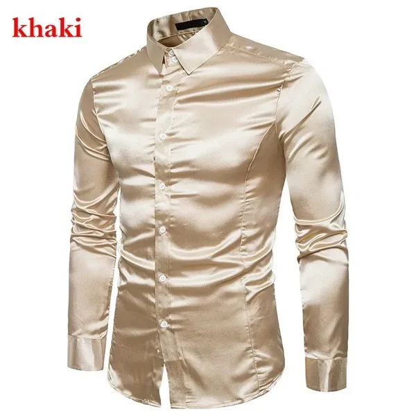 2.Satin Like Feel Silk Fabric/Soft decent Slim Fit/Bright Pure Color/Spread Collar