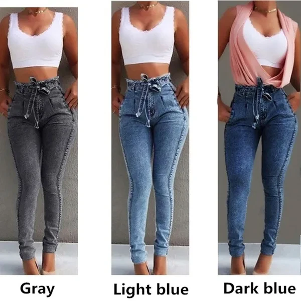Plus Size Women's Slim Stretchy Denim High Waist Jeans Pencil Pants Long Trousers