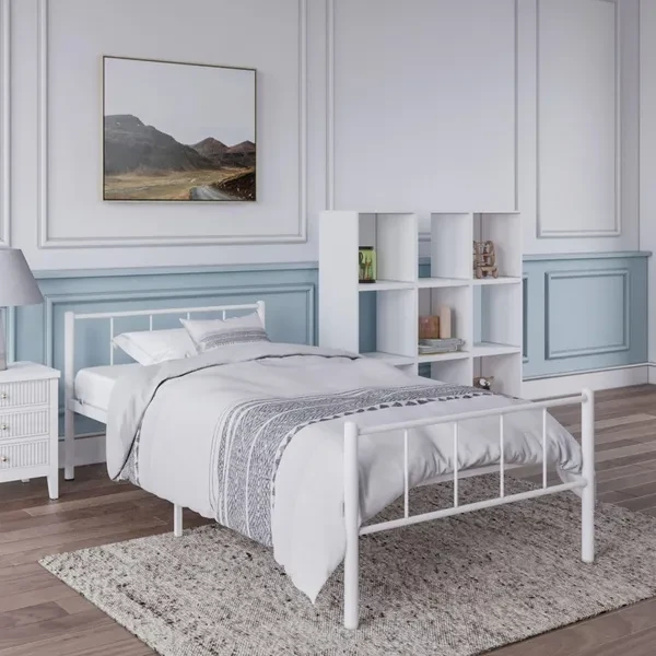 Rack Furniture Austin Steel Twin Sized Home Bedroom Kids Bed Frame Set, White