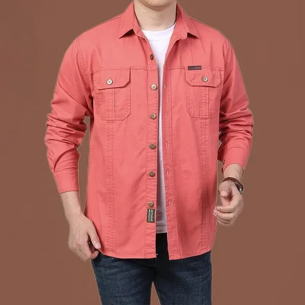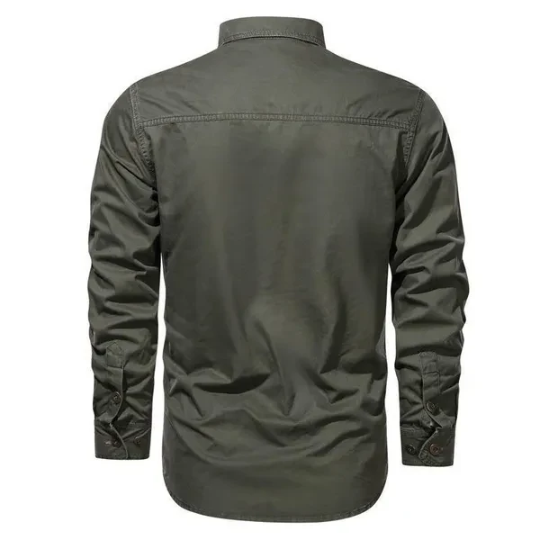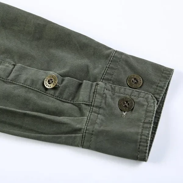 Retro Cargo Style Men's Long Sleeved Shirts with Pockets Men's Casual Button Up Shirts Spring Autumn Military Shirts