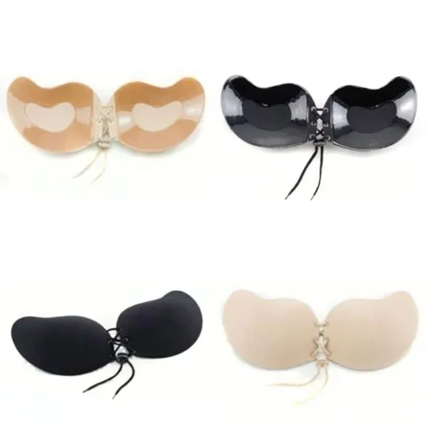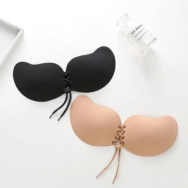 Reusable Strapless Invisible Bra Sexy Seamless Push Up Silicone Bras for Women Skin Black Sexy Lingerie Drawstring Bralette