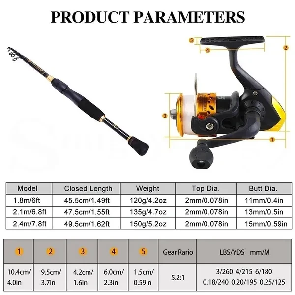 Closed Length:47.5cm/1.55ft 48.5cm/1.59ft 51cm1.67ft
