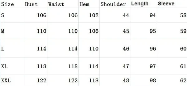 Size	      Bust	     Waist	      Hem	    Shoulder	Length	Sleeve