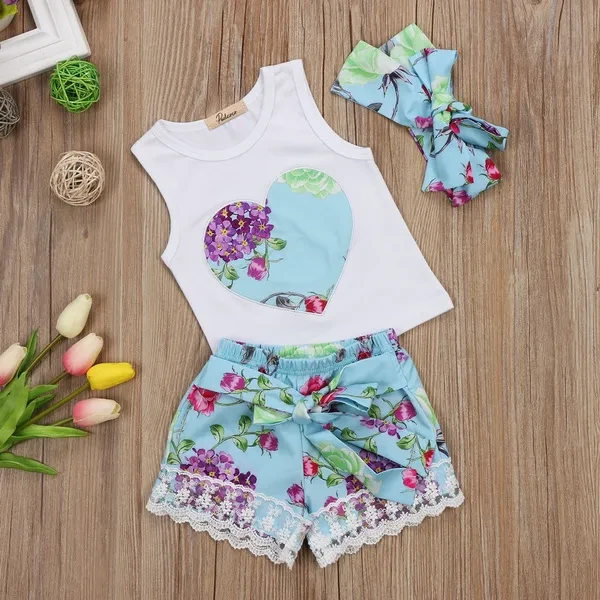 Lovely Toddler Baby Girls Tops+Shorts+Headband 3Pcs Outfits !! High quality and Brand new 100% Main Color: AS The Picture New in Fashion Material: Cotton blend Package included: 1 x Tops + 1 x Pant + 1 x Headband (Does not include other accessories) Please kindly refer to your kids actual height and the size chart before buying/bidding. Thanks. There is 2-3% difference according to manual measurement. please check the measurement chart carefully before you buy the item. 1 inch = 2.54 cm Please note that slight color difference should be acceptable due to the light and screen.