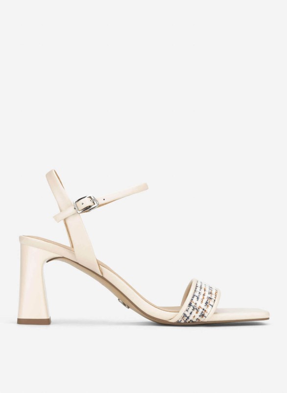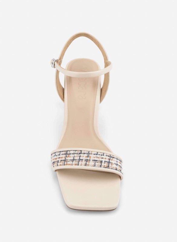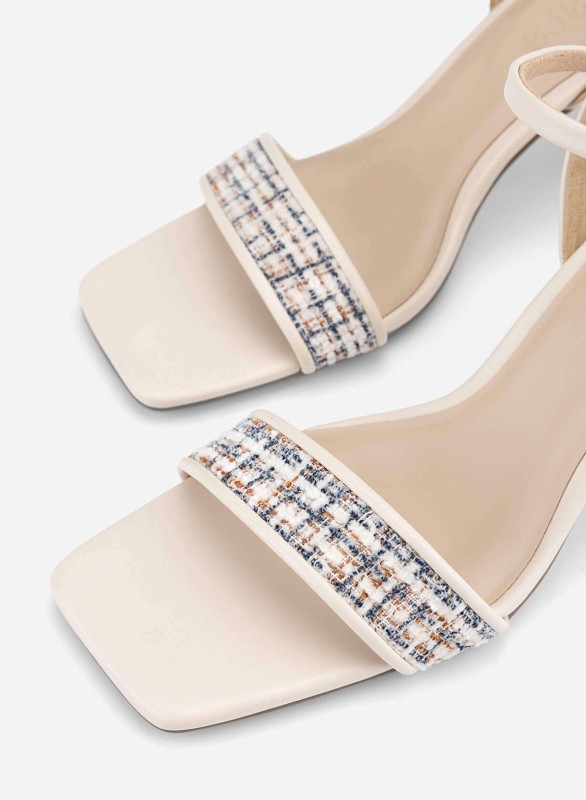 Tweed Block Heel Sandals - PUM 0816 - Cream