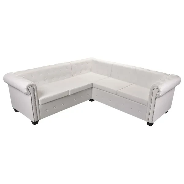 This Chesterfield corner sofa is the perfect blend of comfort and sophistication and will make a great addition to any home or office. This 5-seater sofa, with its tufted and studded detailing and gracefully curved arms, will add a touch of luxury, class and style to any interior.