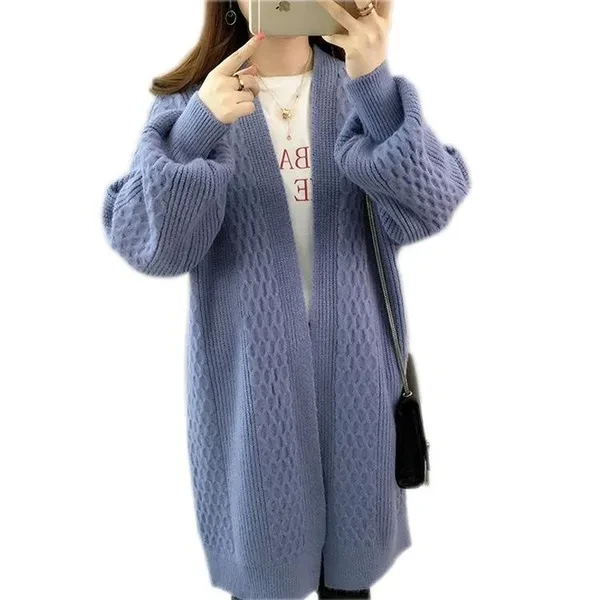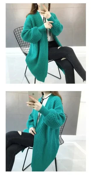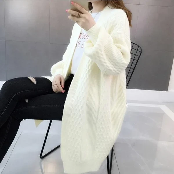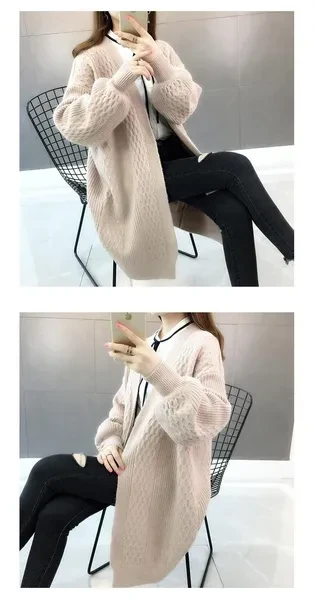 Winter New Women Fashion Casual Sweater Knitting Cardigan Full Sleeve Sweater Long Temperament Sweater Loose Sweater Keep Warm