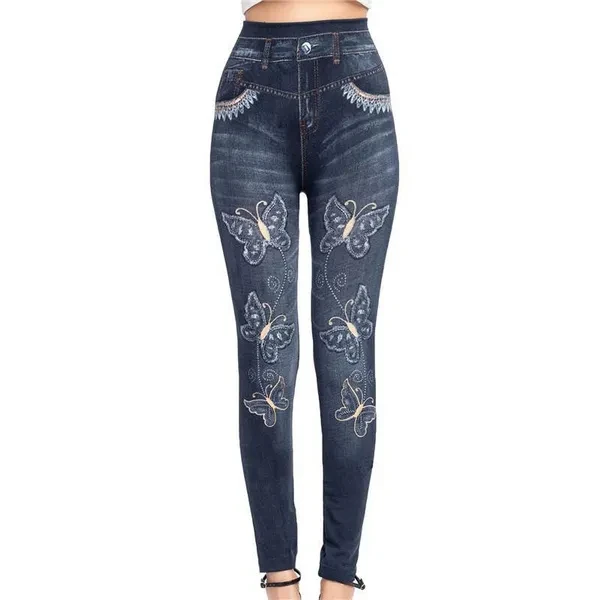 Women High Waist Jeans Leggings Butterfly Print Ankle Length Pants Super Stretchy Skinny Imitation Jeans Leggings