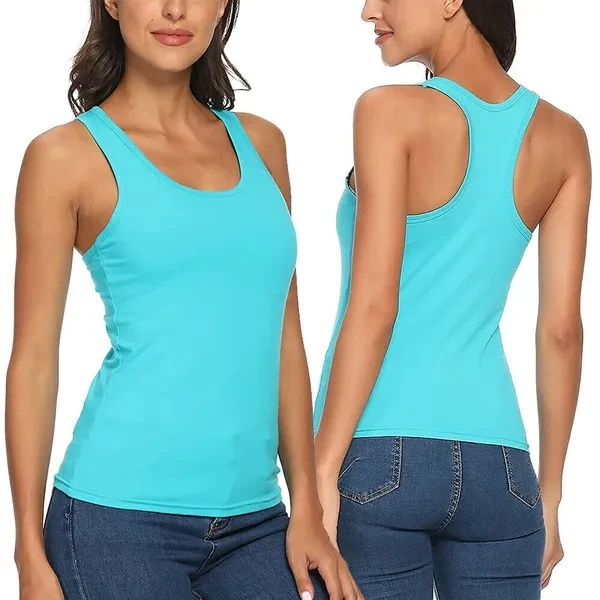 Features: Pull On closure High-quality fabric: Ritera women's vest is made of 95% cotton and 5% spandex. Breathable, soft and elastic material keeps you Comfortable throughout the exercise. Fashionable design: spoon collar, double layer Fabric design on the chest, don't worry about chest exposure,the clothes are elastic and can fit any body type. Suitable for occasions: very suitable for gym, yoga, sports, fitness, running, etc. Stay trendy and cool in everyday wear and outdoor activities. Matching skills: This loose female vest is perfect for matching tights or jeans, giving a refreshing spirit and giving a stylish and elegant feeling. Size Chart: Bust Size (S): 85-90cm Bust Size (M): 90-95cm Bust Size (L): 95-100cm Bust Size (XL): 100-107cm Bust Size (2XL): 107-112cm Bust Size (3XL): 112-117cm Length (S): 57.5cm Length (M): 58.7cm Length (L): 60cm Length (XL): 61.2cm Length (2XL): 62.5cm Length (3XL): 63.7cm