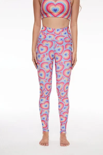 Pattern Description: Love is all about understanding and inclusivity. To celebrate LGBTQ love, our designer crafted a colorful Powerpuff heart pattern inspired by acceptance. Bold, vibrant, and full of pride, it celebrates love in its diverse and colorful forms, paying tribute to the beauty of the LGBTQIA+ community. Product Features: High-waisted design perfectly shapes, supports and flatters any body types No small elastic band at the top   Two side-pockets for essentials No side seams for extra flattering fit and comfort Stretchy and light fabric for a smoothing, second-skin feel Fabric: Made with 84% RPET and 16% spandex from recycled plastic bottles and it is 100% recyclable! - Four-way stretch, breathable and anti-bacterial. Model Info: Maria // Height: 5'74  // Bust 33.9” //  Waist 24.0” // Hips 35.4 // SILVERWIND size Regular S